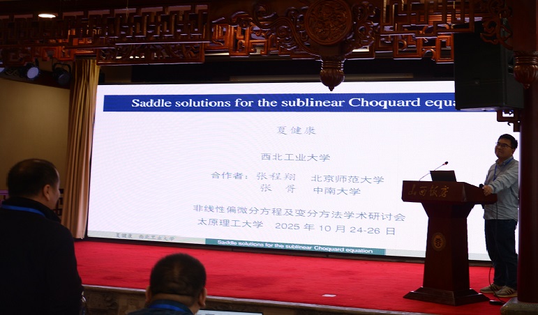 为了交流、报告当前关于非线性偏微分方程与变分方法相关领域的最新成果和进展,助力太原理工大学数学学院在该领域的科研创新与人才培养,2025年10月24日-26日,太原理工大学数学学院组织的“非线性偏微分方程与变分方法会议”在太原顺利举办。
