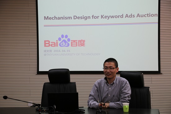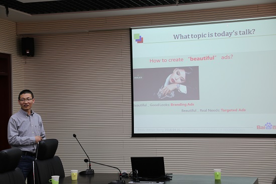 戎文晋首先作了“Mechanism Design for Keyword Ads Auction”交流报告,从计算广告学谈起,讲解大数据时代计算广告学的基本概念和运行机制,涉及到大规模搜索和文本分析、信息获取、统计模型、机器学习、分类、优化以及微观经济学,旨在实现特定语境下,在特定用户和相应广告之间找到“最佳匹配”。戎文晋在报告中将理论与实践相结合,全面讲解了大数据与博弈机制的结合所设计出的新型市场,大数据与深度学习技术的共同作用对预估准确率的提升,分阶段介绍了大规模计算能力,复杂模型,高效算法的相关内容。