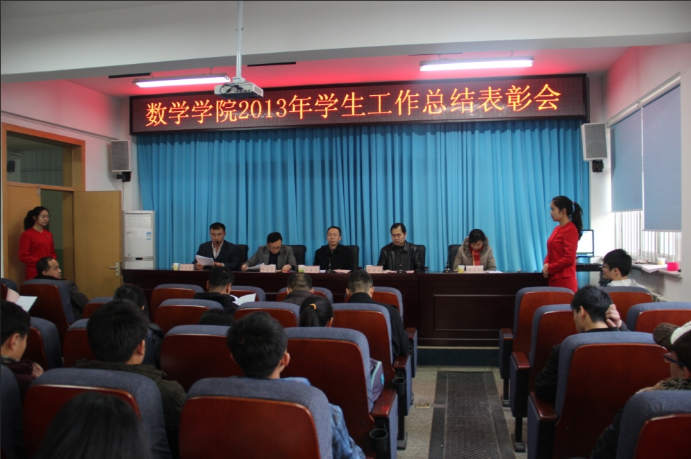 12月30日,我院在学院一层报告厅召开2013年度学生工作总结表彰大会,学院党政领导,各系部中心主任,三办主任,全体班主任出席会议,获奖学生代表参加会议,会议由学工办主任钟明涛主持。