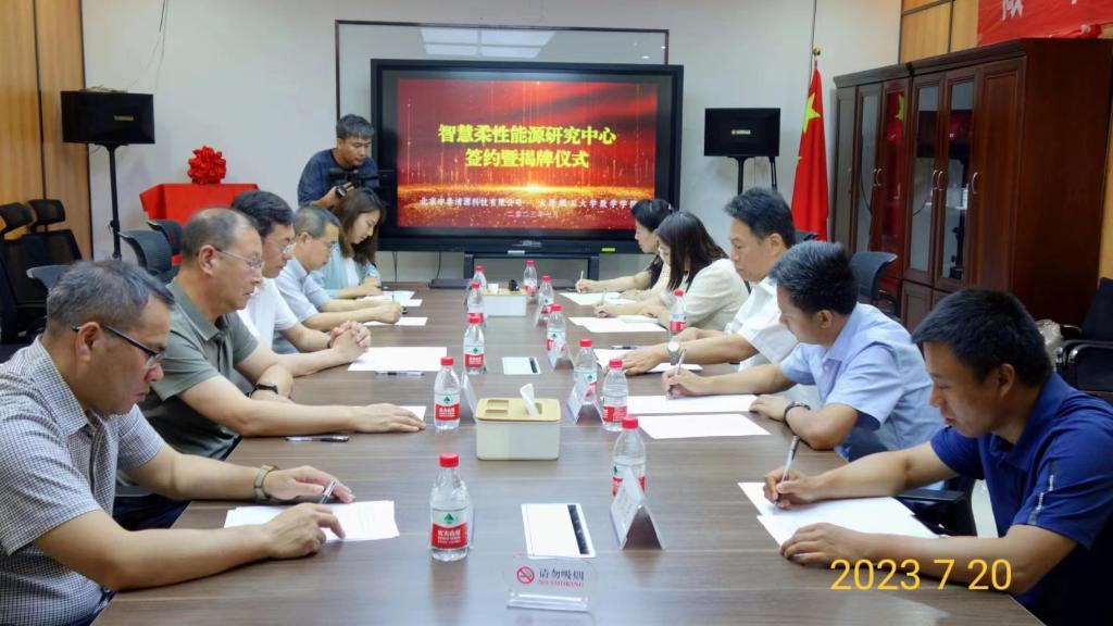 7月20日,我院和北京中泰清源科技有限公司在太原华润大厦签署智慧柔性能源研究中心共建协议,并举行智慧柔性能源研究中心和大学生就业实习基地揭牌仪式。学院党委书记游志勇、院长杨卫华、副书记李楠楠、副院长柴玉珍、副院长滕凯民、教授代表张玲玲,北京中泰清源科技有限公司董事长丁瑞明、副总经理王亚明、行政总监赵东、技术管理部主任胡裕春,山西大德智联科技有限公司总经理等出席会议。