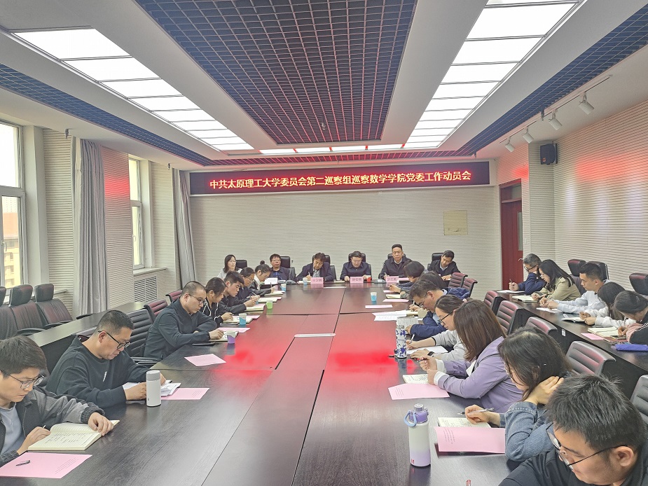 4月11日下午,中共太原理工大学委员会第二巡察组巡察数学学院党委工作动员会在数学学院602会议室召开。省纪委监委驻太原理工大学纪检监察组组长、校党委常委、巡察工作领导小组副组长尉安英,中共太原理工大学纪律检查委员会副书记、巡察办主任仝卫明,第二巡察组组长申晓东,副组长韩福英及巡察组成员出席会议。院领导班子成员、系部中心负责人,三办及团委负责人,教工、学生支部书记,各系部副教授及讲师代表,院级学生组织负责人代表参加了动员会。动员会由数学学院党委书记游志勇主持。