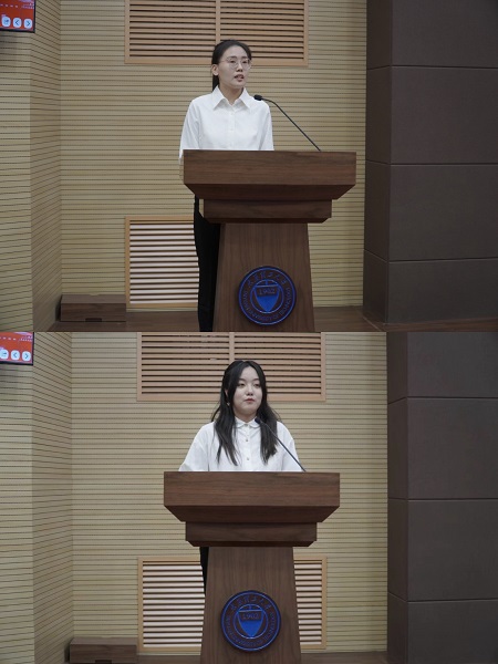 感恩母校,未来可期。研究生代表王灵玉和本科生代表董诗羽回忆了自己美好的大学时光,分享了自己在学术上的探索与追求、在社团活动中的锻炼与成长,并向母校和老师们表达了衷心的感谢和美好的祝福!