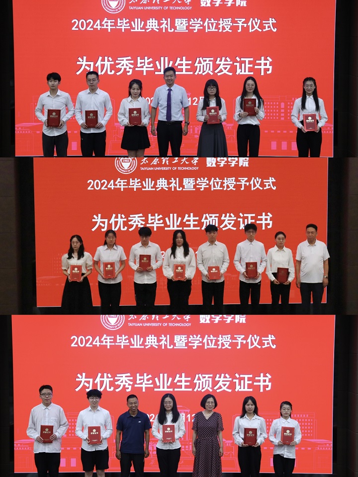 荣誉加冕,星辉启航。游志勇宣读15名本科生和4名研究生获得“数学学院优秀毕业生”的荣誉称号。学院党政领导分批为优秀毕业生颁发荣誉证书,并合影留念。