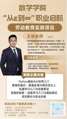 数学学院要办“从ε到∞”职业启航计划劳动教育实践项目,想提升编程技能、增加项目经历、为就业加分的同学千万别错过!项目不收费!全程参与且完成任务的同学,结业会发结业证明,简历上又能多一笔亮点!