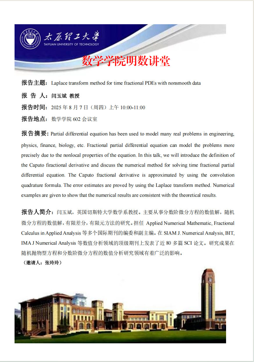 数学学院将于8月7日邀请闫玉斌教授做学术报告