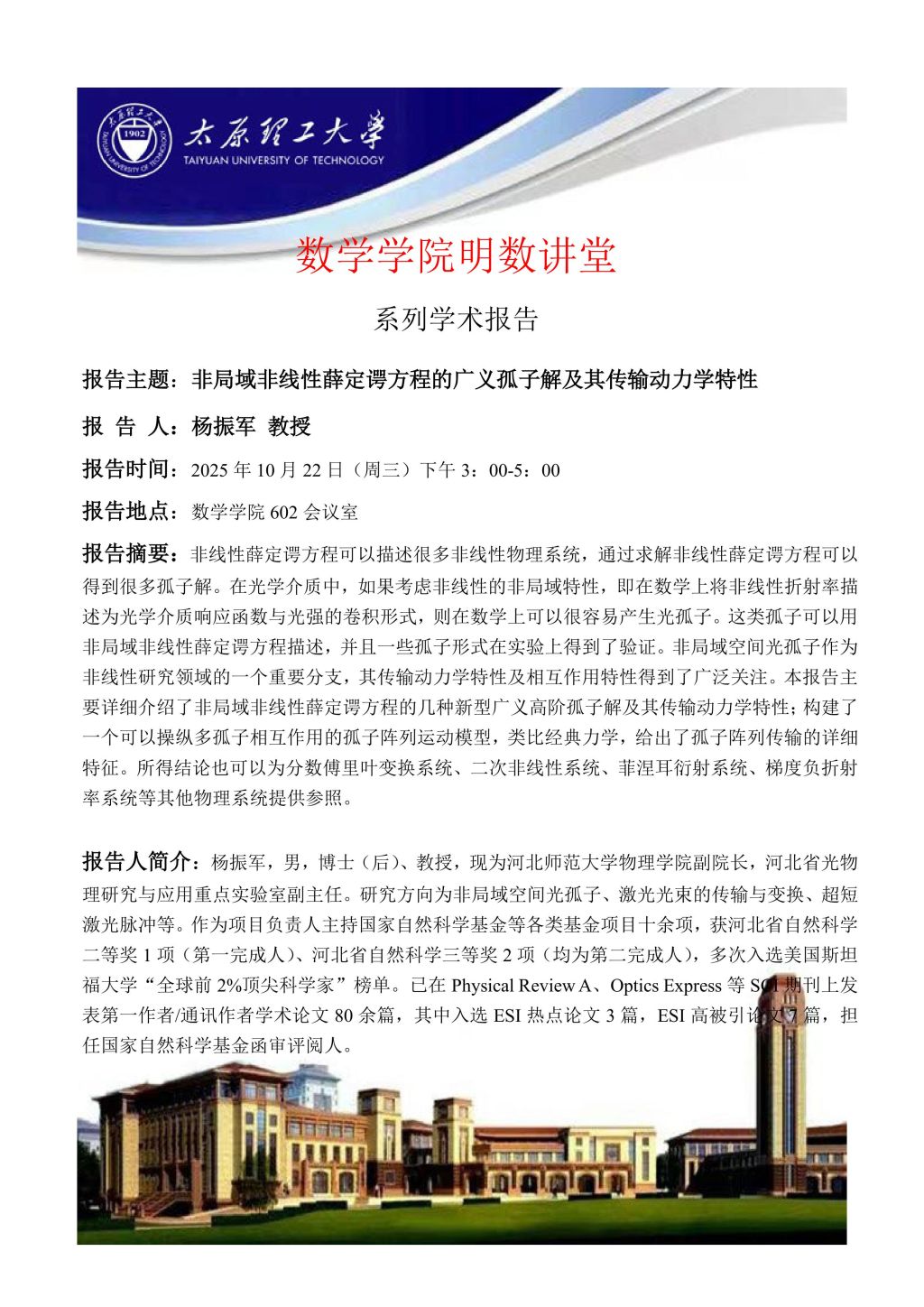 数学学院将于10月22日邀请杨振军教授做学术报告