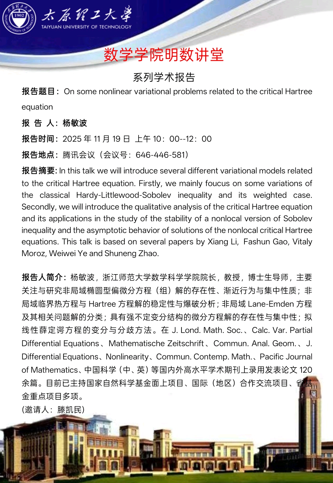 数学学院将于11月19日邀请杨敏波教授做学术报告