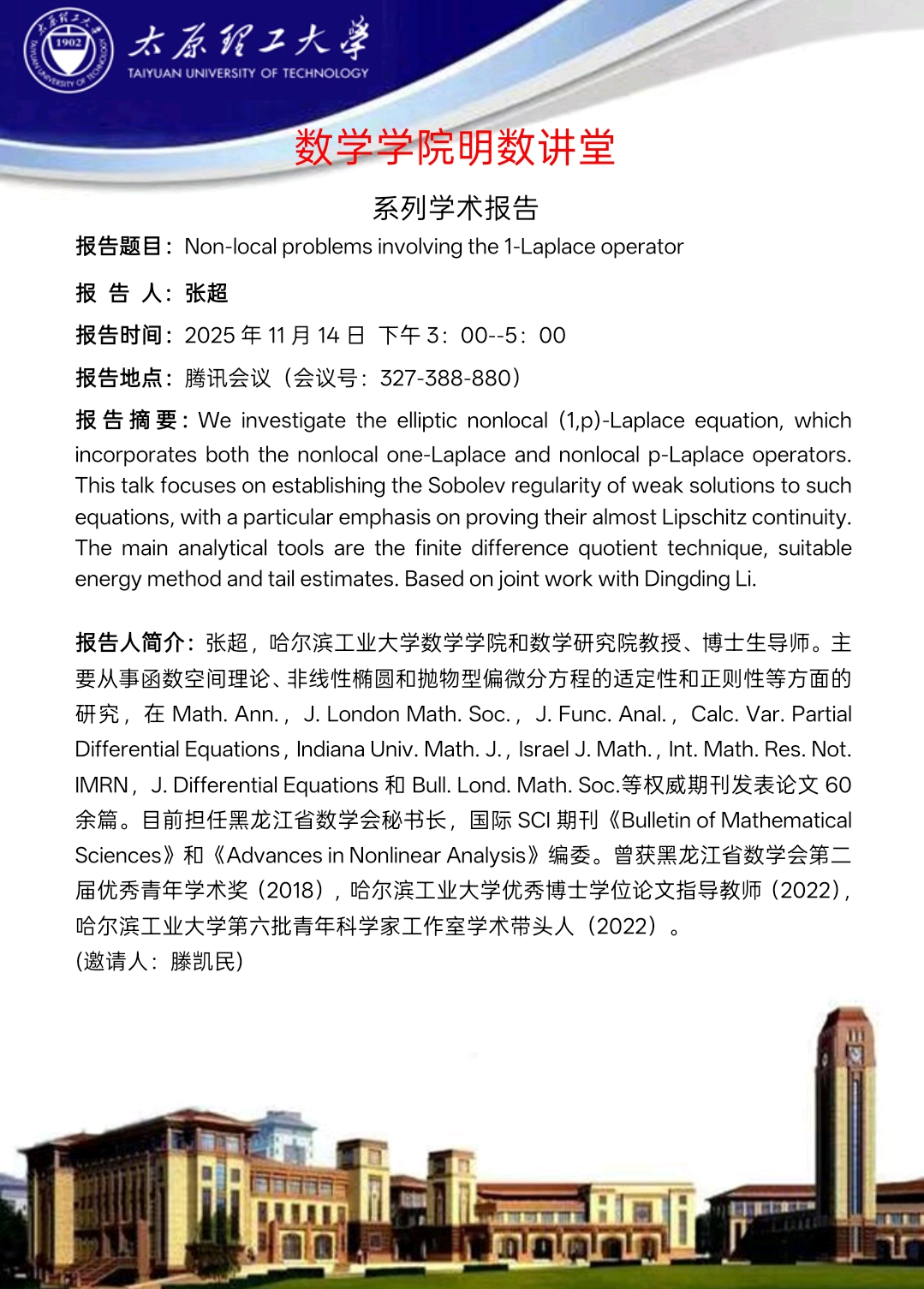 数学学院将于11月14日邀请郭钰教授做学术报告