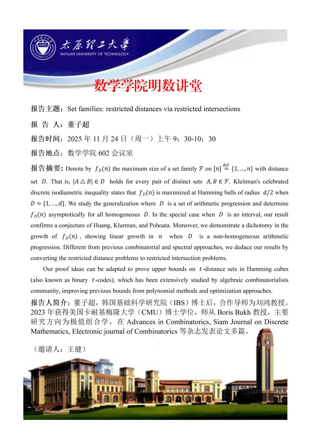 数学学院将于11月24日邀请董子超做学术报告