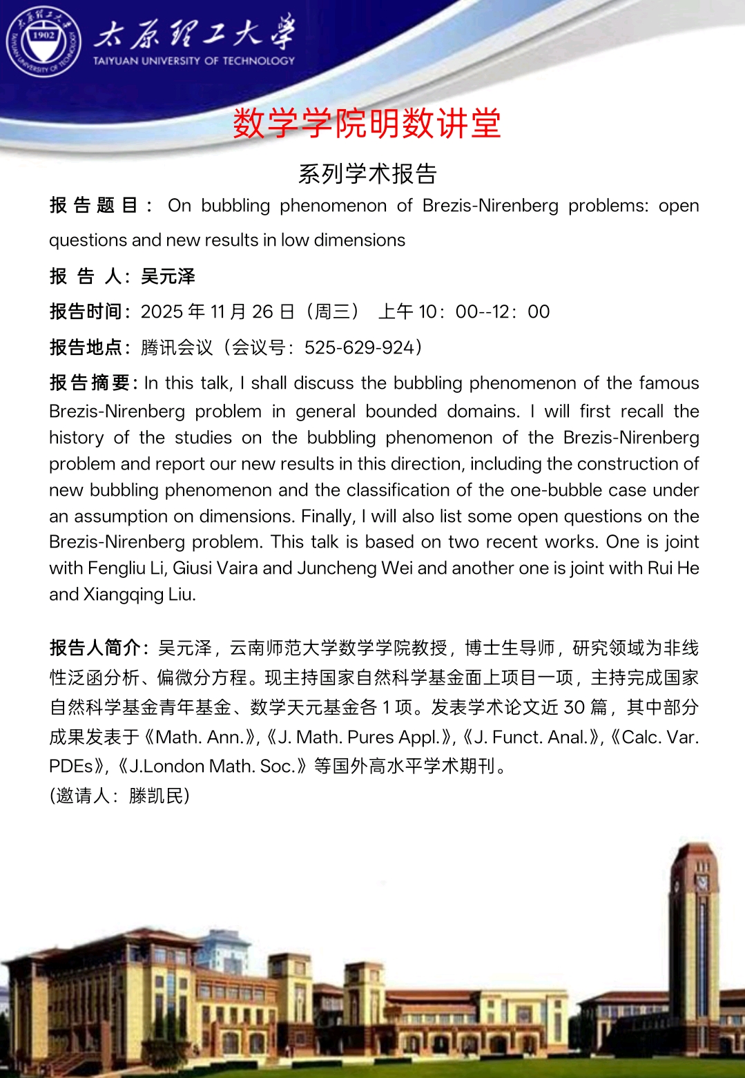 数学学院将于11月26日邀请吴元泽教授做学术报告