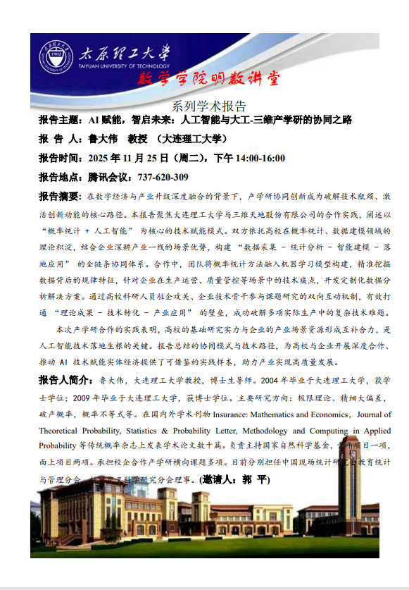 数学学院将于11月25日邀请鲁大伟教授做学术报告