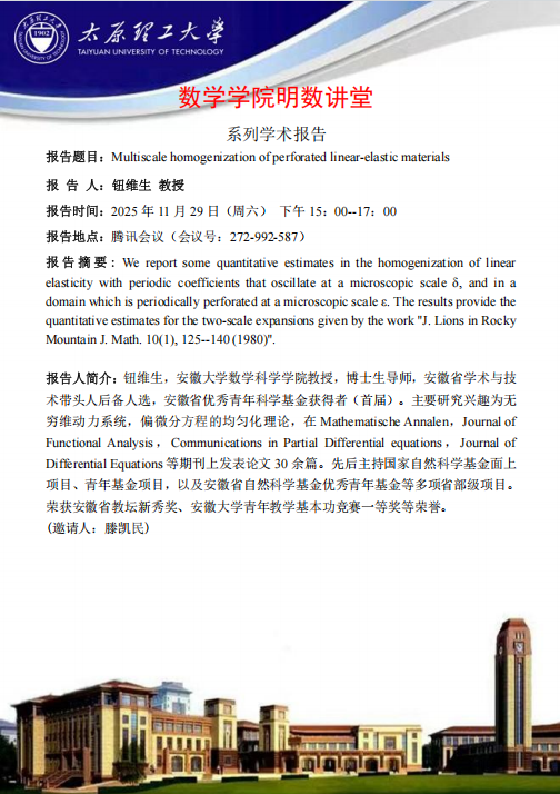 数学学院将于11月29日邀请钮维生教师做学术报告
