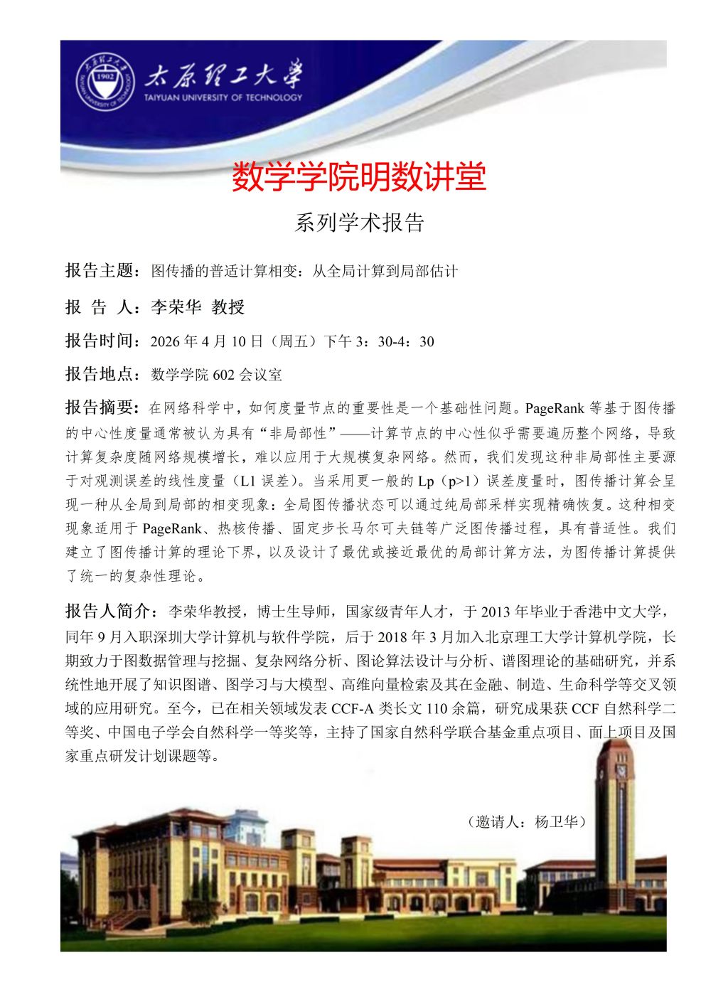 数学学院将于4月10日邀请李荣华教授做学术报告