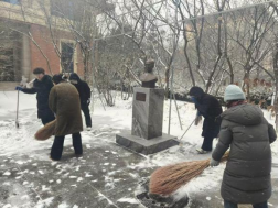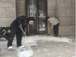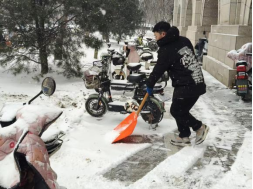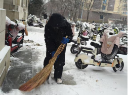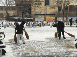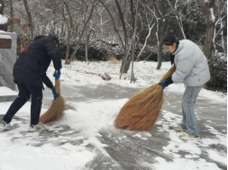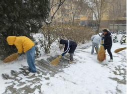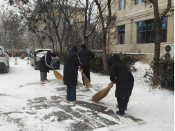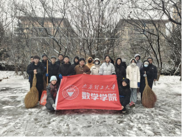 活动中,师生们不畏严寒、分工协作,对数学学院门口、周边道路以及常师贞小广场等重点区域进行了集中清理。扫帚与地面的摩擦声此起彼伏,忙碌的身影在白雪中勾勒出一道道温暖的风景线。经过全力奋战,主要通行区域的积雪得到有效清除,为师生的安全出行提供了有力保障。